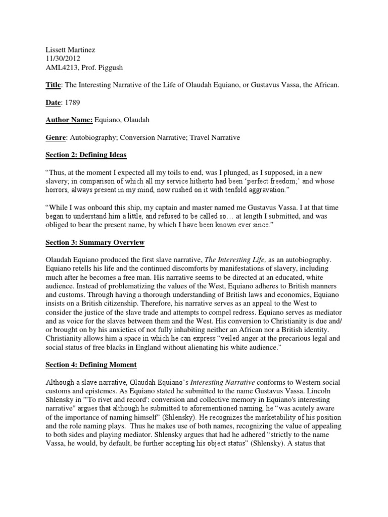 Narrative Analysis Of The Life Of Olaudah Equiano Docx Surname 1 Student S Name Tutor S Name Course Name Date Narrative Analysis Of The Life Of Course Hero